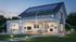 Modernes Haus mit Solarpaneelen auf dem Dach und einem Satelliten auf dem Flachdach.
